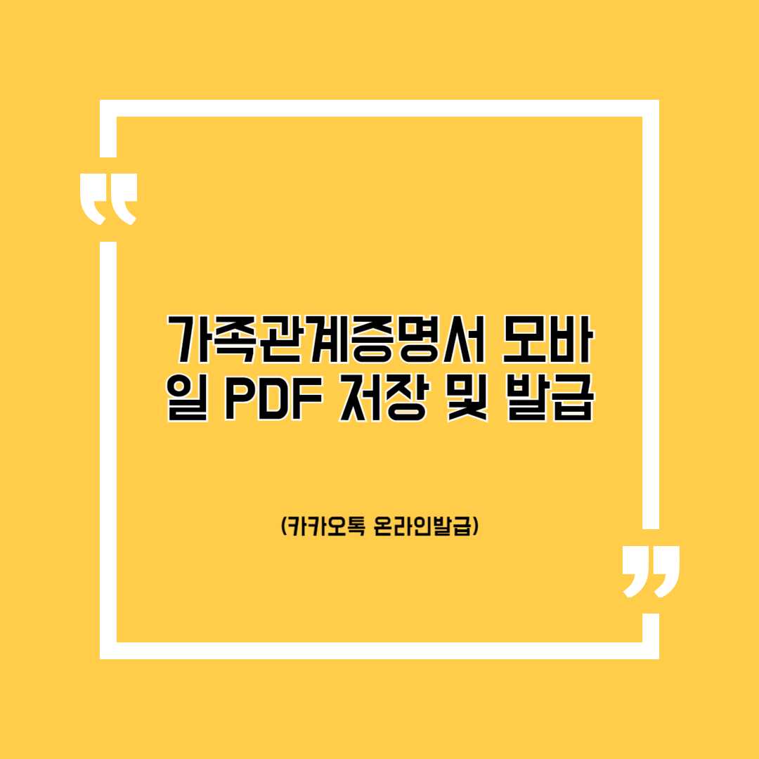 가족관계증명서를 자주 사용하는 경우, PDF 파일을 안전한 클라우드나 카카오톡 파일 보관함에 저장해 두면 필요할 때 바로 활용할 수 있습니다. 이제 더 이상 번거롭게 주민센터를 방문하지 않고도 손쉽게 가족관계증명서를 발급받아 활용해 보세요!