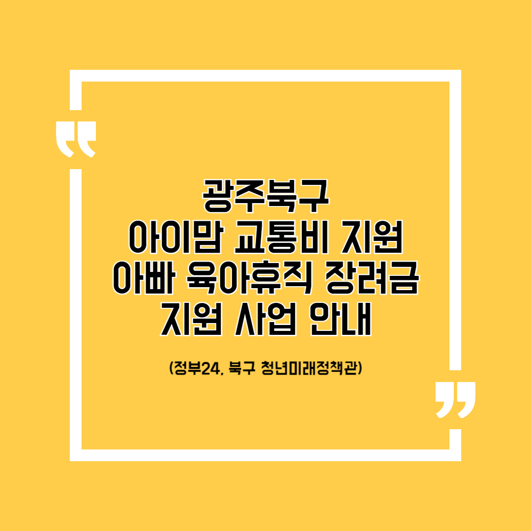 광주광역시 북구에서는 2025년부터 영유아 가정을 위한 아이맘 교통비 지원 사업과 아빠 육아휴직 장려금 지원 사업을 시행합니다. 이 두 가지 지원 정책은 육아 부담을 덜어주고, 보다 나은 양육 환경을 조성하기 위한 취지로 마련되었습니다.