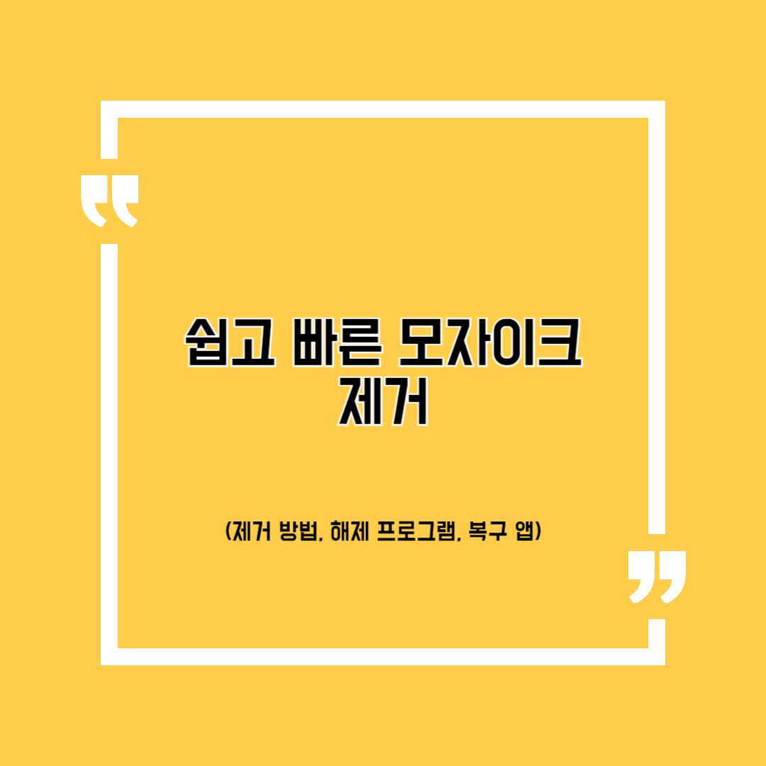 모자이크 제거는 이미지나 영상에서 흐림 처리된 부분을 복구하는 과정입니다. 원본 데이터가 손실된 상태에서 이를 완벽하게 복원하는 것은 거의 불가능하지만, 일부 AI 기술과 알고리즘을 활용하면 어느 정도 해제할 수 있습니다. 이번 글에서는 모자이크 제거 방법과 관련 프로그램, 그리고 복구 앱을 소개합니다.